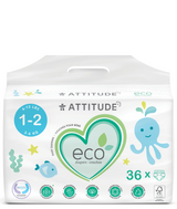 Véritable solution de rechange aux couches jetables traditionnelles, les couches ATTITUDE utilisent plus de 50% de matières premières biodégradables et sont hypoallergéniques, sans chlore, sans fragrance et sans colorant. Bien entendu, elles sont aussi efficaces, absorbantes et confortables - de jour comme de nuit. Nos couches biodégradables taille 1-2 conviennent aux bébés de 3-6 kg (6 à 13 livres).