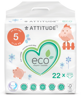 Véritable solution de rechange aux couches jetables traditionnelles, les couches ATTITUDE utilisent plus de 50% de matières premières biodégradables et sont hypoallergéniques, sans chlore, sans fragrance et sans colorant. Bien entendu, elles sont aussi efficaces, absorbantes et confortables - de jour comme de nuit. Nos couches biodégradables taille 5 conviennent aux bébés de 11 à 25kg (24 à 55 livres).