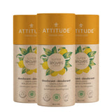 85g (3 OZ.)Le déodorant naturel ATTITUDE Super leaves™ a été conçu dans un emballage en papier biodégradable pour réduire la consommation de plastique à usage unique. Parce que prendre soin de la planète et de son corps devrait être une pratique quotidienne, notre déodorant sans aluminium est fabriqué à partir d'ingrédients naturels et non toxiques, tels que la poudre d’arrow-root et l'amidon de maïs, qui absorbent l'humidité et éliminent naturellement les odeurs désagréables. En plus d’être EWG VERIFIED™, il offre une protection longue durée sans bloquer les glandes sudoripares.