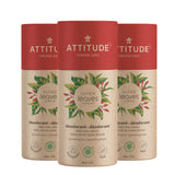 85g (3 OZ.)Le déodorant naturel ATTITUDE Super leaves™ a été conçu dans un emballage en papier biodégradable pour réduire la consommation de plastique à usage unique. Parce que prendre soin de la planète et de son corps devrait être une pratique quotidienne, notre déodorant sans aluminium est fabriqué à partir d'ingrédients naturels et non toxiques, tels que la poudre d’arrow-root et l'amidon de maïs, qui absorbent l'humidité et éliminent naturellement les odeurs désagréables. En plus d’être EWG VERIFIED™, il offre une protection longue durée sans bloquer les glandes sudoripares.